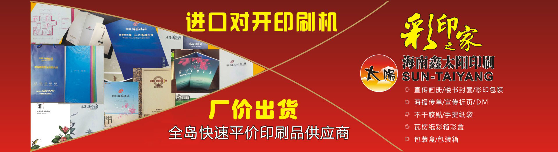海南鑫太陽印刷業有限公司成立于2002年,主要從事生產海報畫冊、傳單簡介、精品包裝、掛歷臺歷、不干膠貼、手提紙袋、瓦楞紙包裝箱和彩箱紙盒等,公司有日本、德國等對開及四開高速彩色印刷機、自動膠裝機、自動鎖線機、自動復膜機等先進的自動化設備,業務涉及商業、地產、水產、食品、農林、藥品、化工、航空等行業的彩印包裝及宣傳印刷品。我公司另外還設有紙箱包裝廠,可以更好地為客戶配套生產各種檔次級別的瓦楞紙箱彩盒、普通紙箱紙盒、精裝禮盒等大型產品包裝,產品范圍包括花炮箱、飲料箱、食品箱、魚箱、花箱等。   公司印刷車間實行24小時高速生產,最快可做到當日下單當日取貨,可以快捷及時地將產品送到用戶手中。省內客戶可做到早上下單,晚上物流發貨,為客戶真正做到物美價廉高效快速的產品,直接面對廣告印刷同行和客戶承接同行加工服務,以最高效率最佳品質為客戶服務,打造海南有影響力的商業快印平臺。   歡迎新老客戶、廣告印刷業同行前來現場參觀指導,現場看樣。同行包工包料會員價有更多優惠,請來電咨詢前臺報價。 前臺 前臺1 休息室 車間... 了解詳情